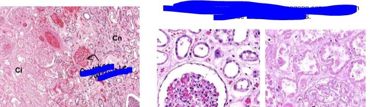 1. on voit très bien délimitation entre zone infarcie et non-infarcie avec les vaisseaux très très conjestifs entre les deux zones