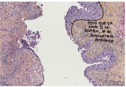 carcinome in situ de la vessie (n’envahit pas le chorion), juste une prolifération trop grande de l’épithélium