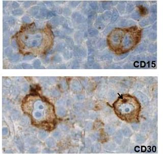 Cellules cytoplasme brun= cellules de Reed-Sternburg du lymphme de Hodgkin