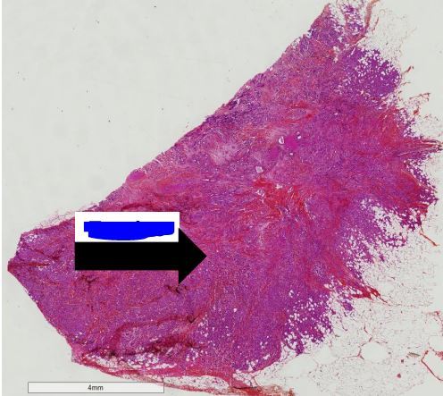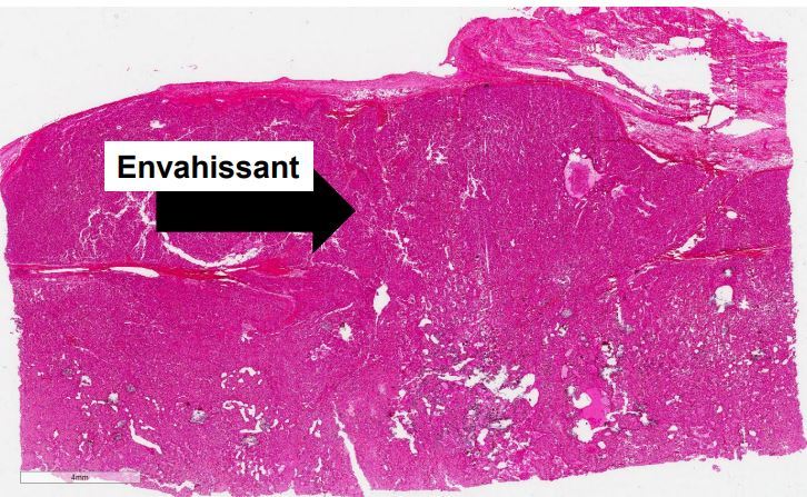 la tumeur est plus en profondeur (t)