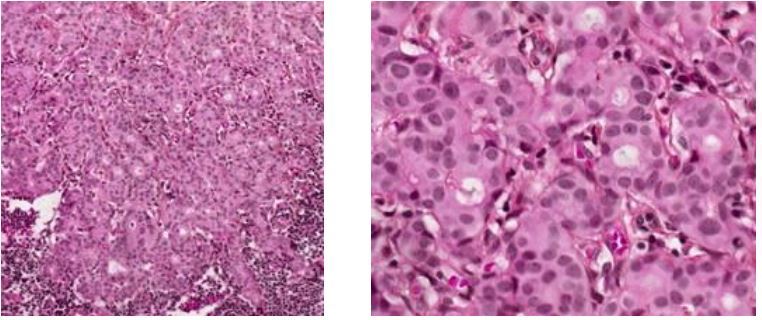 cellules tumorales néoplsiques forment des ébauches de glandes à l’int du ganglion