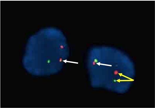 translocation chromosome 8 avec 14 donne quelle maladie et comment on le voit en fish
