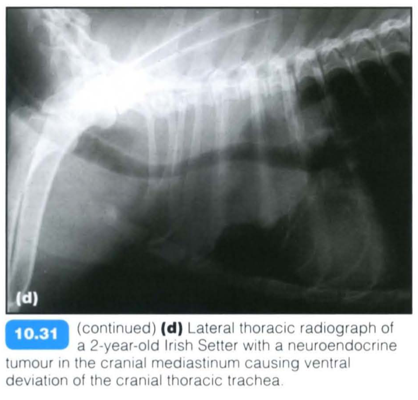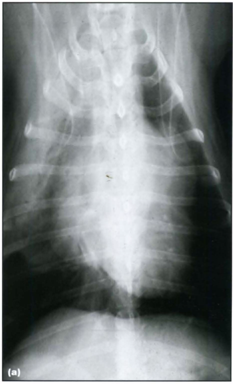 Obese animals have large amounts of fat around and within the thoracic cavity, which leads to increased X-ray attenuation and generation of scatter radiation. The net result is an increased lung opacity with poor visibility of the bronchovascular structures. Intrathoracic fat restricts full lung expansion during inspiration, which also contributes to the more opaque appearance of the lungs in these animals. These changes should not be mistaken for pathologically increased lung opacity.