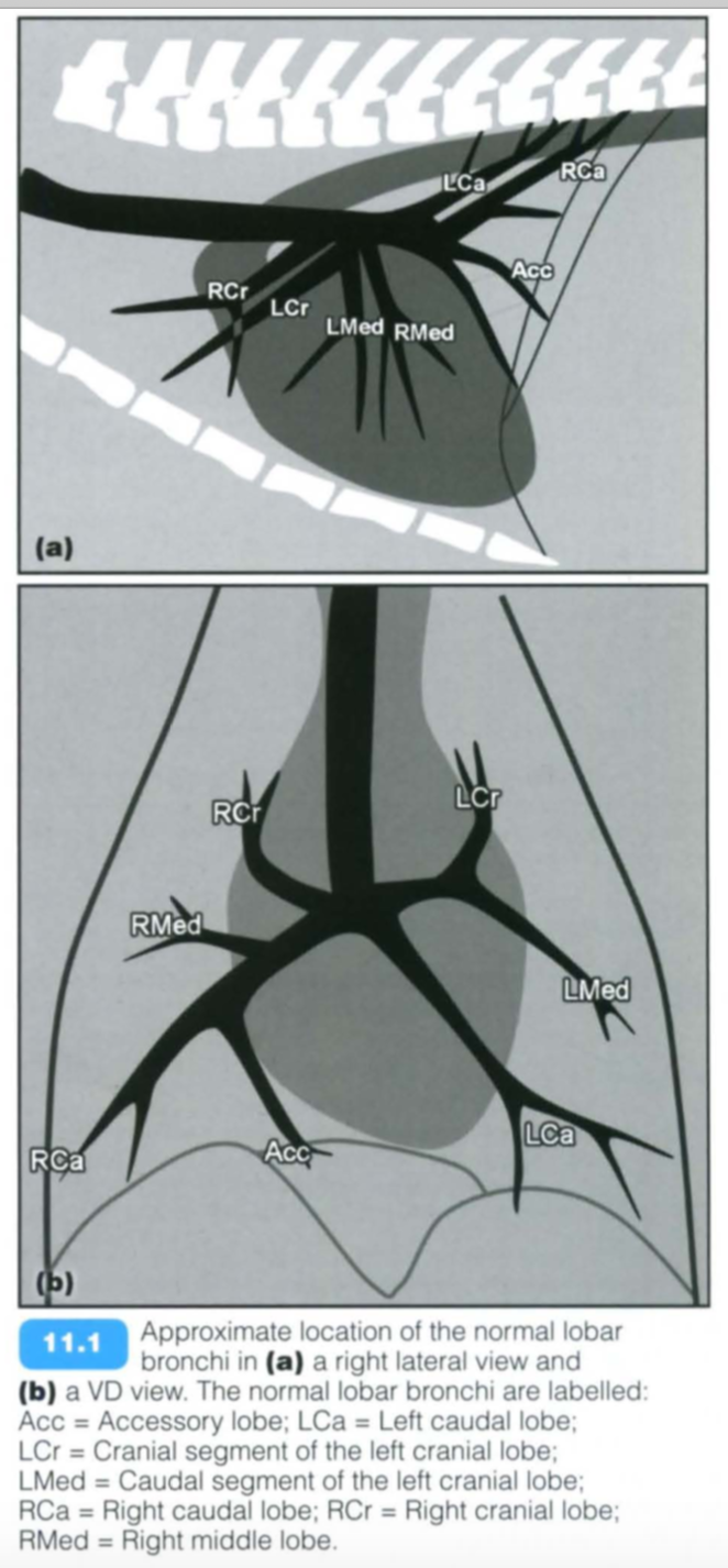 The bronchial tree begins at the termination of the trachea with its division into the right and left principal (or mainstem) bronchi. The principal bronchi are short and each divides into lobar bronchi (also known as secondary bronchi); these supply the various lobes of the lung and are named according to the lobe they supply (Figures 11 .1 and 11 .2).
