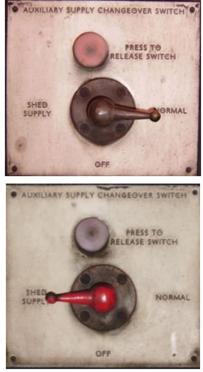 Located on the Motor Coach. For normal operation, the switch will be in the “Normal” position. The “shed supply” position allows the maintenance staff to test 750 volt DC equipment on the unit but are unable to get traction power.