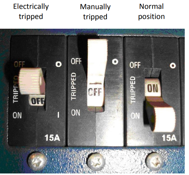 If electrically tripped, reset by pushing up to the off position before attempting to place down in the on position.
