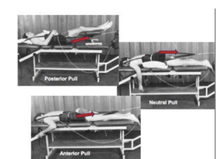 posterior pull: supine, knees on stool, angled pull