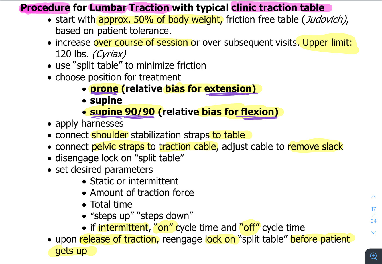 Procedure for Lumbar Traction w/ typical Clinic Traction Table: