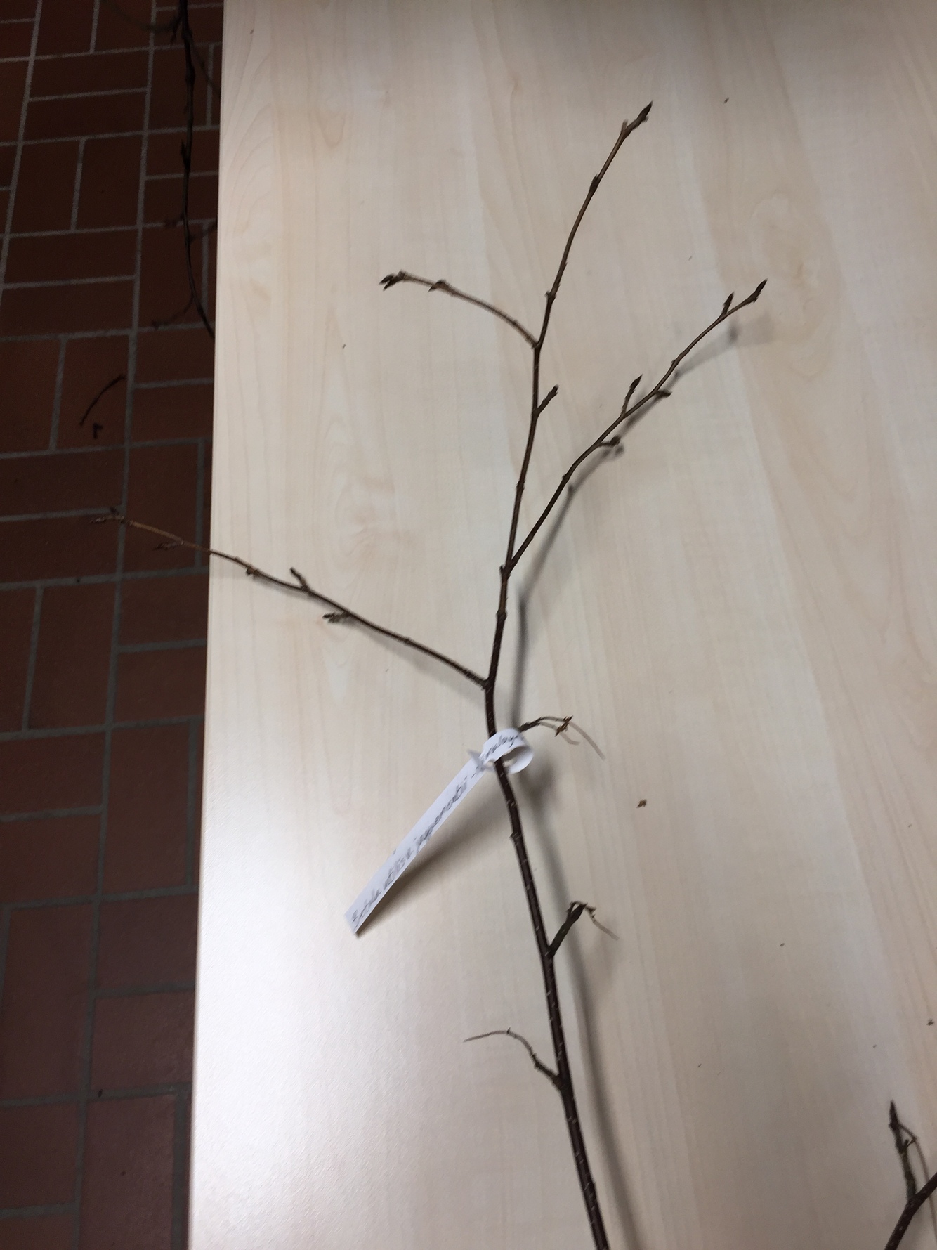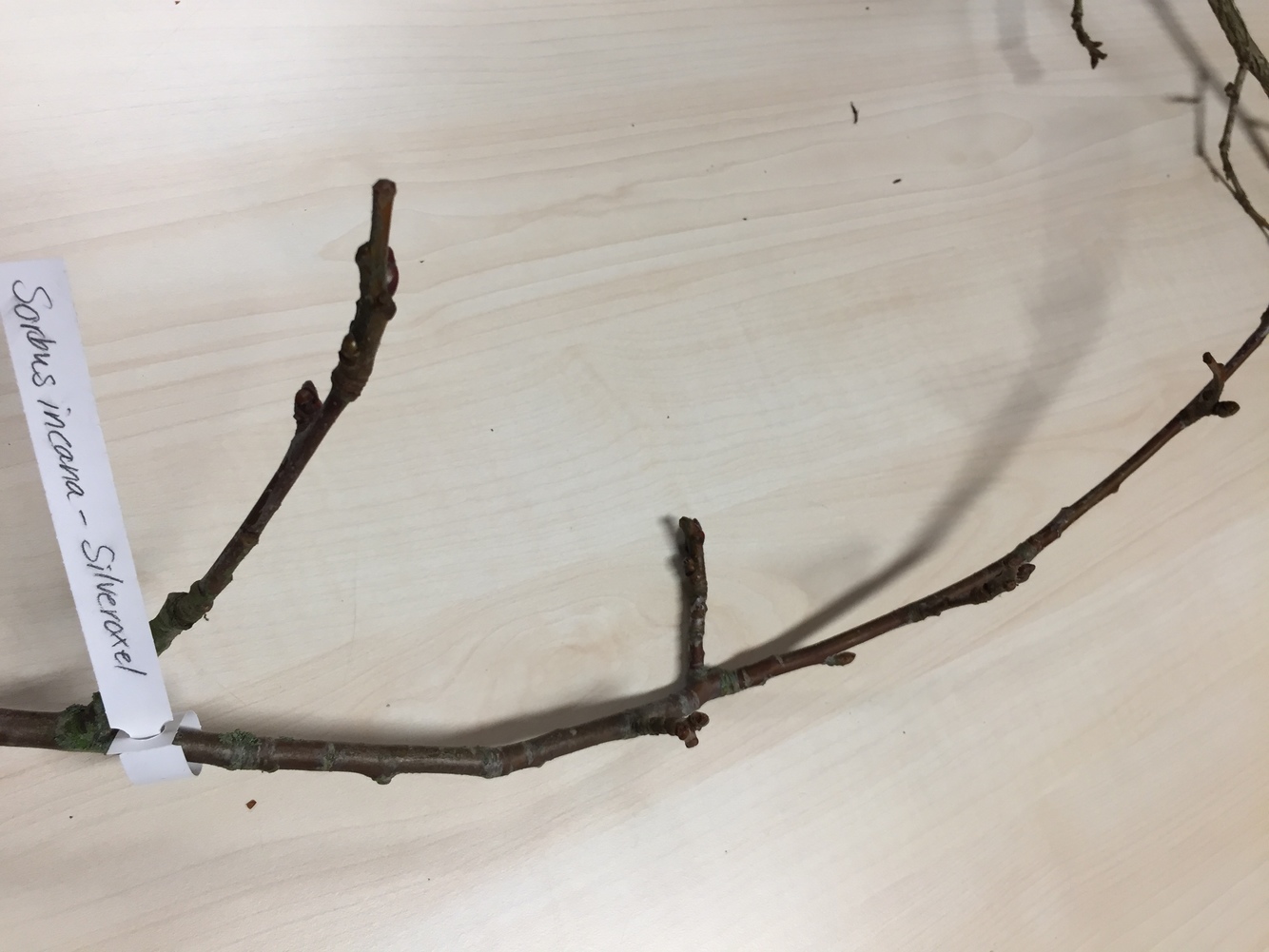 Gröna knoppar. kopparfärgade årsskot. påminner om vanlig oxel. inte så flikiga blad. vanligt träd. Silvriga/vita på undersidan av bladen.