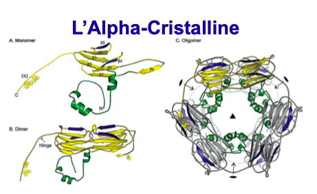 Protéines structurales solubles dans l’eau se trouvant dans la lentille et la cornée de l’oeil permettant la transparence.