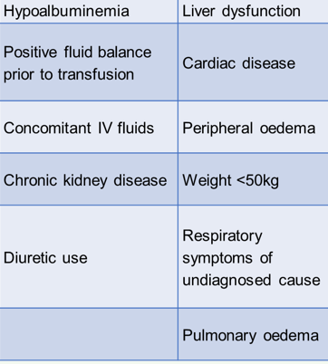 * Transfusion associated circulatory overload (TACO) more common than TRALI