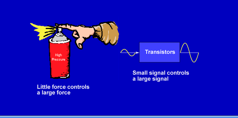 The purpose of a transistor is to control signals. Transistors control a large signal with a small signal.