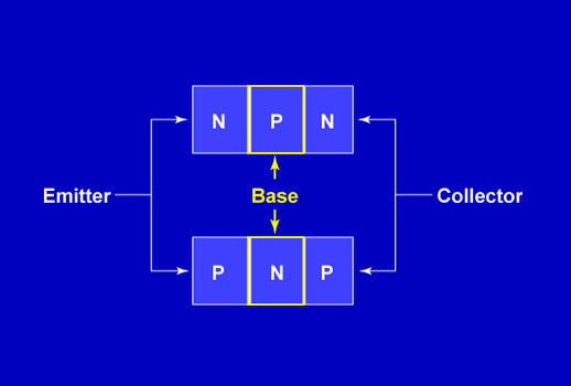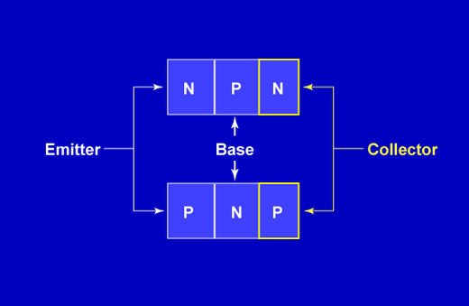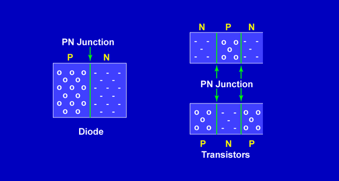 Transistors are solid state devices constructed from N-type and P-type materials just like diodes. Unlike diodes, transistors have three elements with two PN junctions.