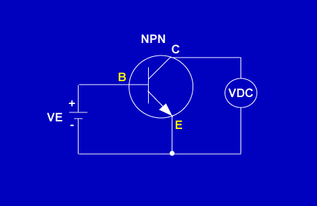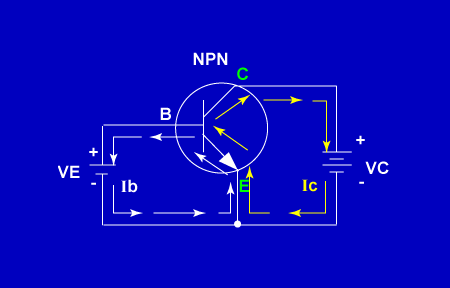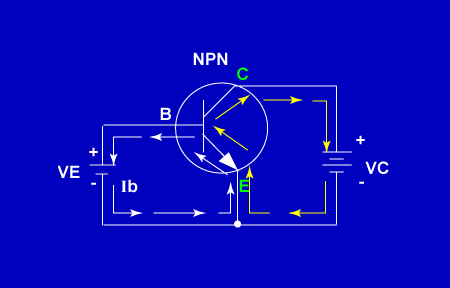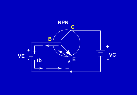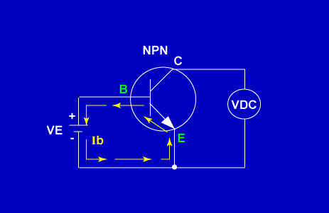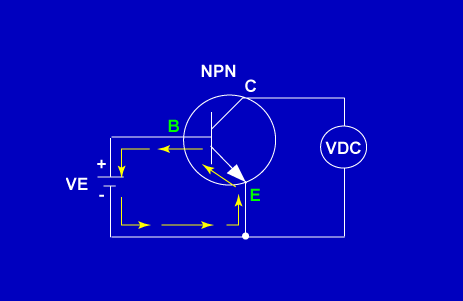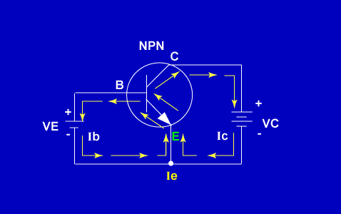 Total current flowing through the transistor circuit (Ie) is found by: Ie = Ib + Ic