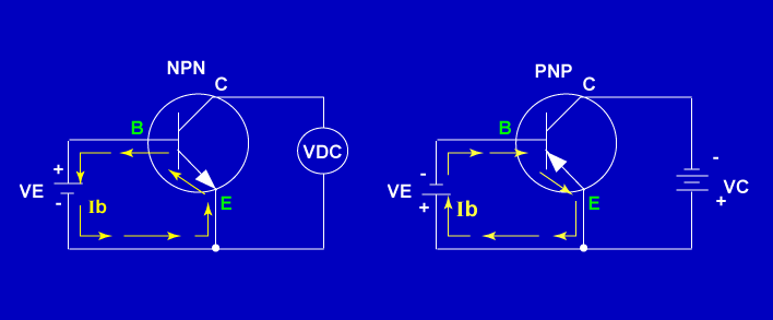 NPN - positive voltage on the base and a negative voltage on the emitter