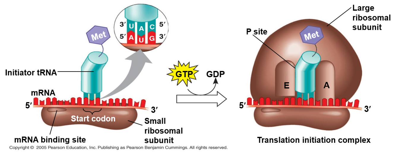 Describe the initiation stage of translation, this can be described in three steps.