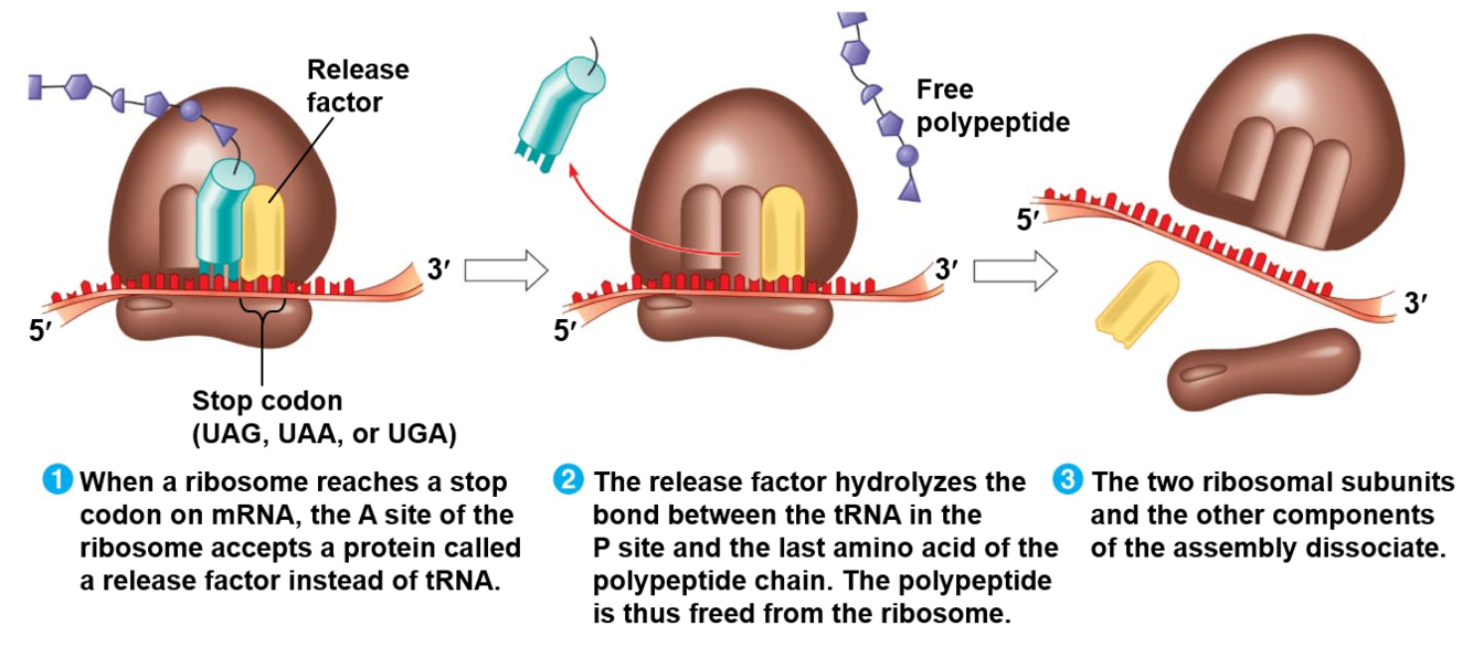 Describe the process of termination in translocation. This is also described in a 3 step sequence.