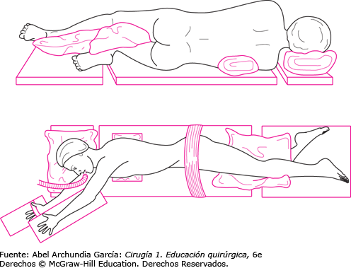 ¿Cómo es la acomodación adecuada del px sobre la mesa quirúrgica? ¿Qué se debe cuidar?