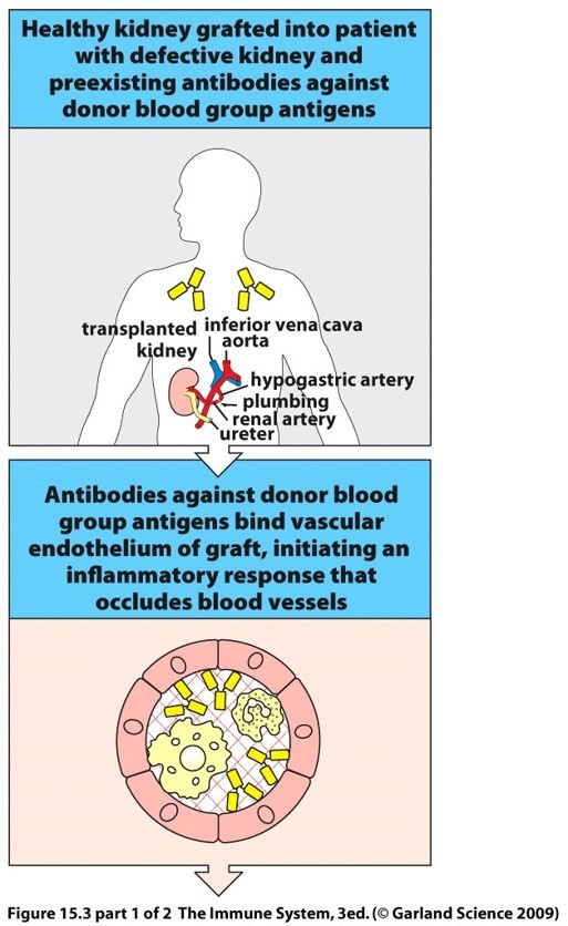 Host’s antibodies against the donor blood group antigens will bind vascular endothelium of graft, initiating an inflammatory response that will occludes blood vessels.