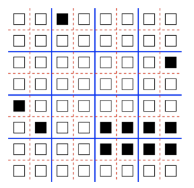 - > instead of particles moving randomly in a gridspace, 2x2 blocks of the space are rotated randomly CW or CCW and then linearly shifted.