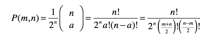For high n (#steps) what is the probability distribution for finding a random walker at position m?