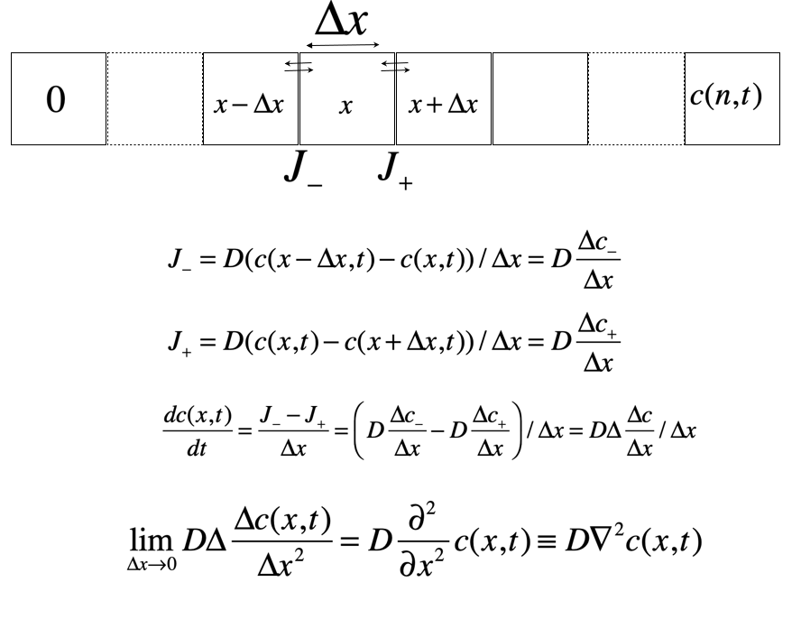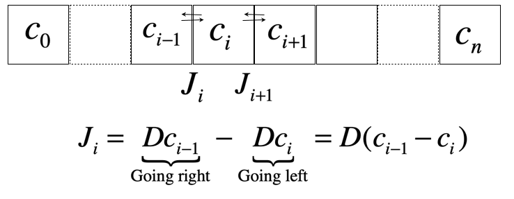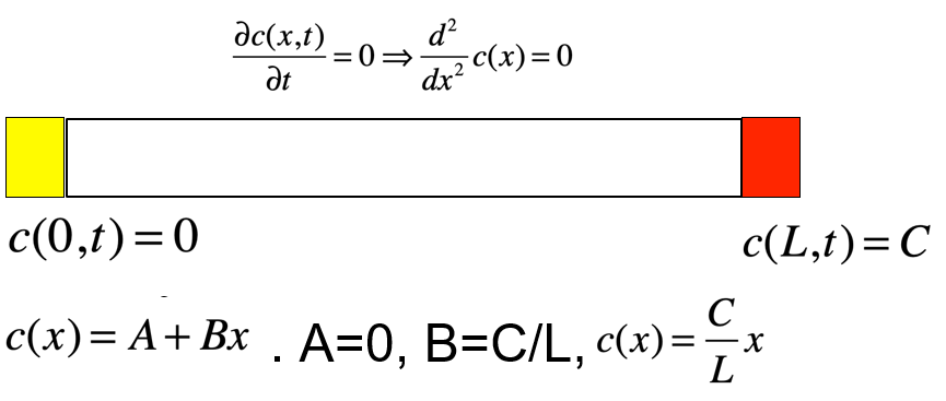 Assuming steady-state of a solely diffusion process what kind of relation describes concentration in terms of position?