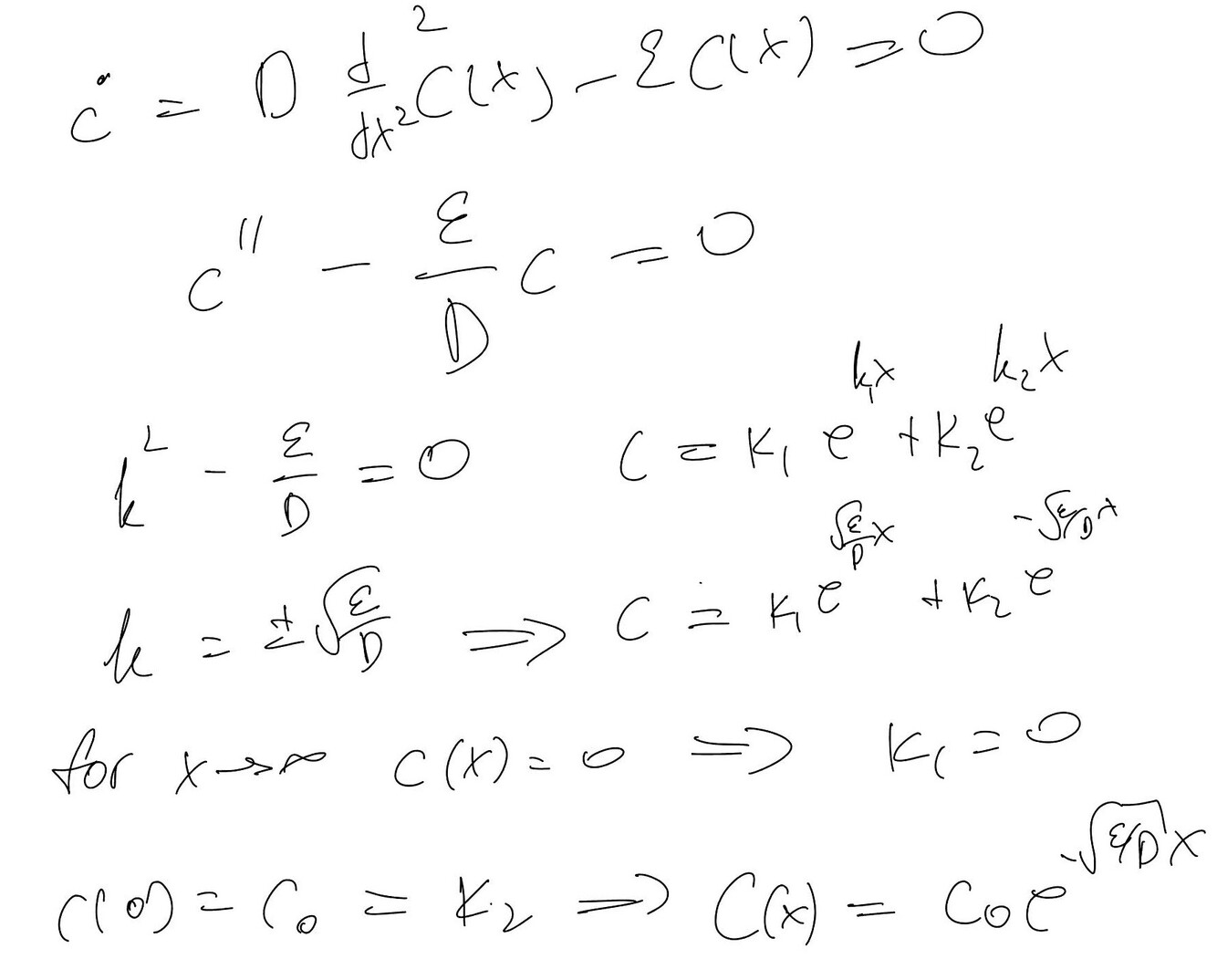 Assuming steady-state of a degradation-diffusion process what kind of relation describes concentration?