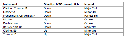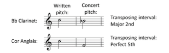 Explain written pitch vs concert pitch using Bb clarinet and cor anglais