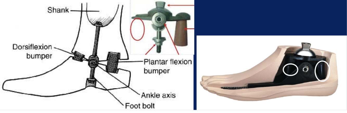 in conventional–Single Axis Foot (SAF), what controls amount and rate of motion?