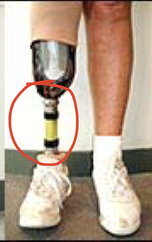 transtibial supracondylar prosthesis, endoskeleton, dynamic action foot, mid keel