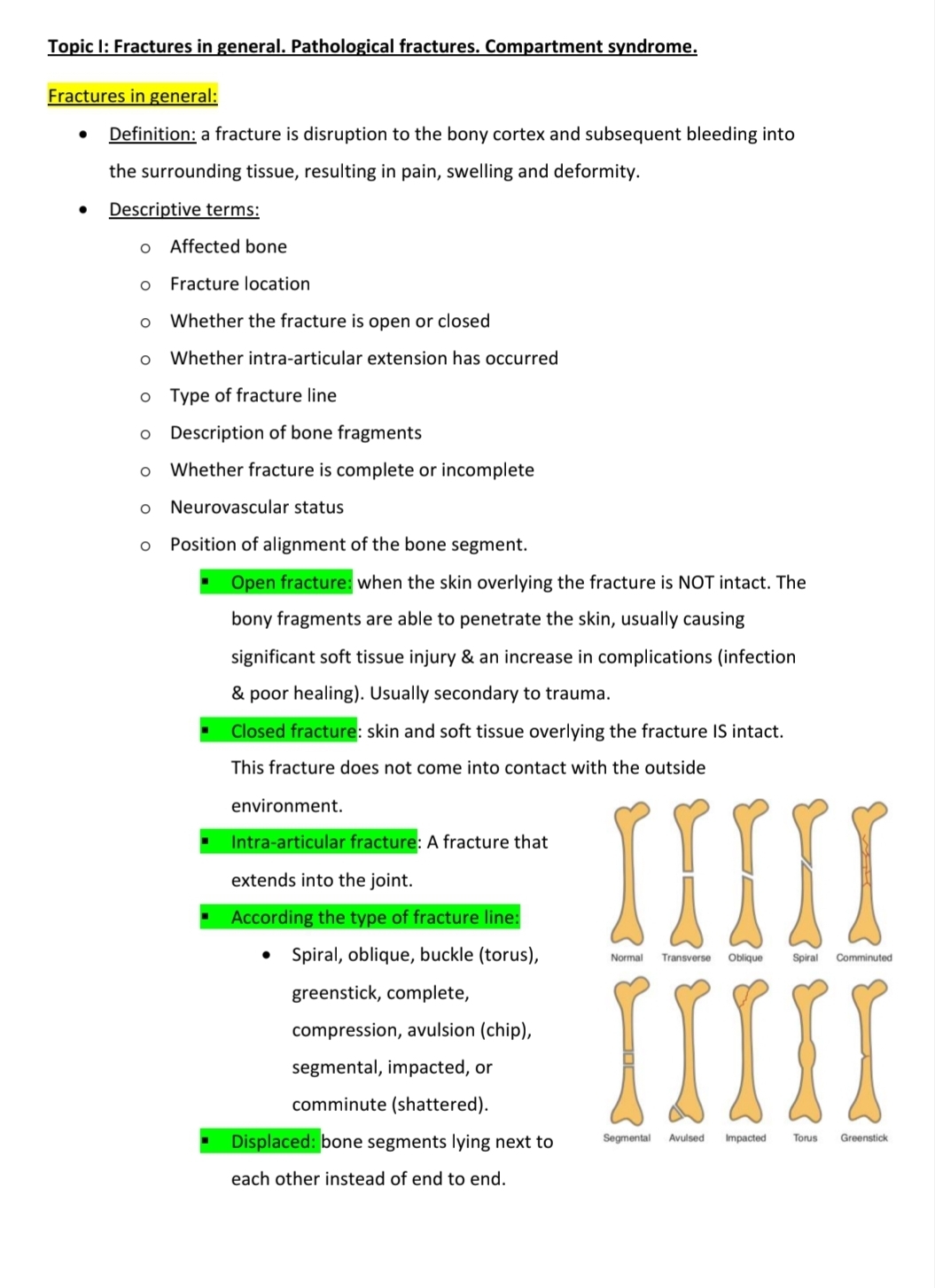 Fractures in general. Pathological fractures. Compartment syndrome.