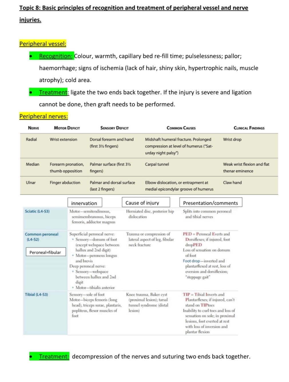 Basic principles of recognition and treatment of peripheral vessel and nerve injuries.