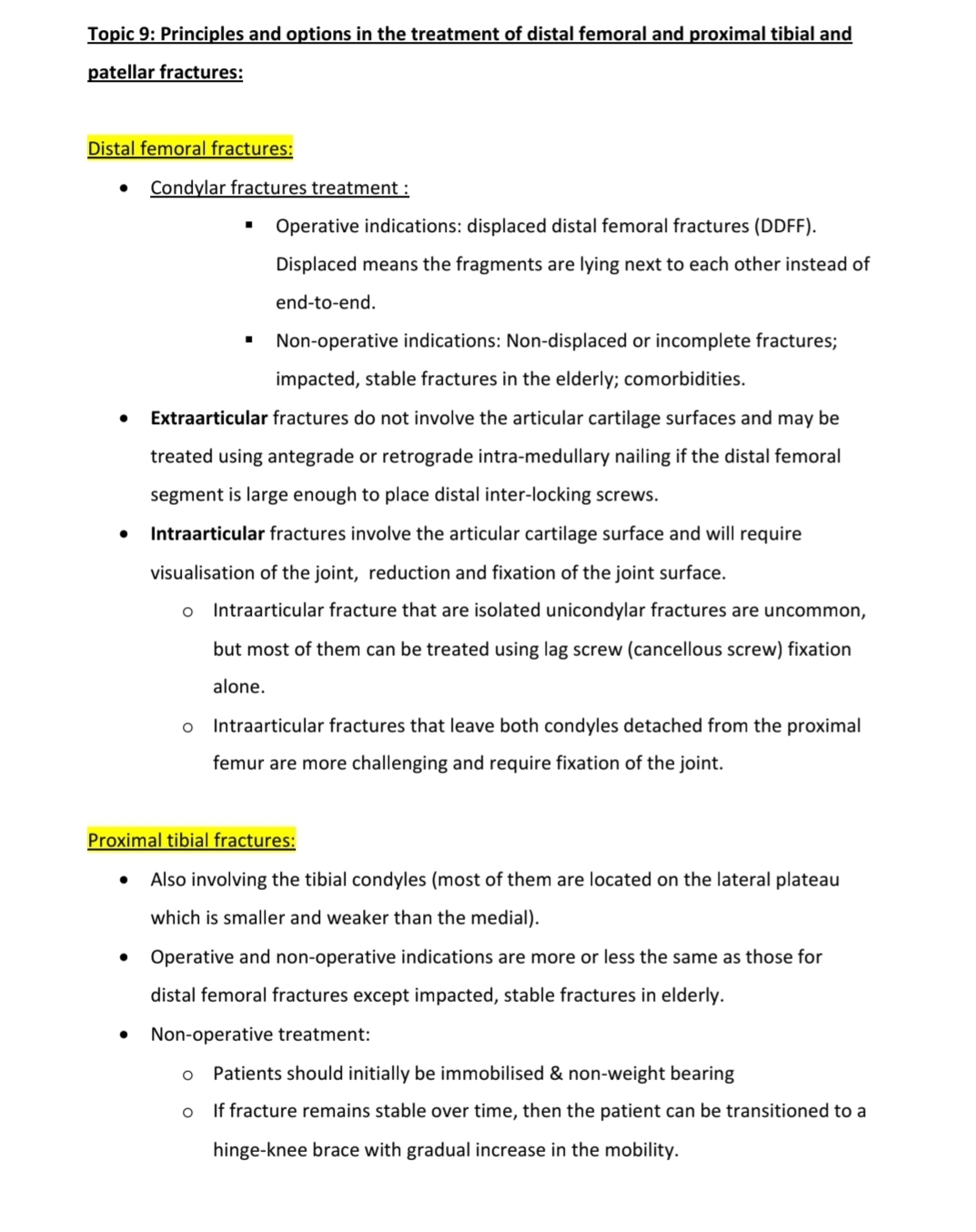 Princips and options in the treatment distal femoral and proximal tibial and patella fractures.