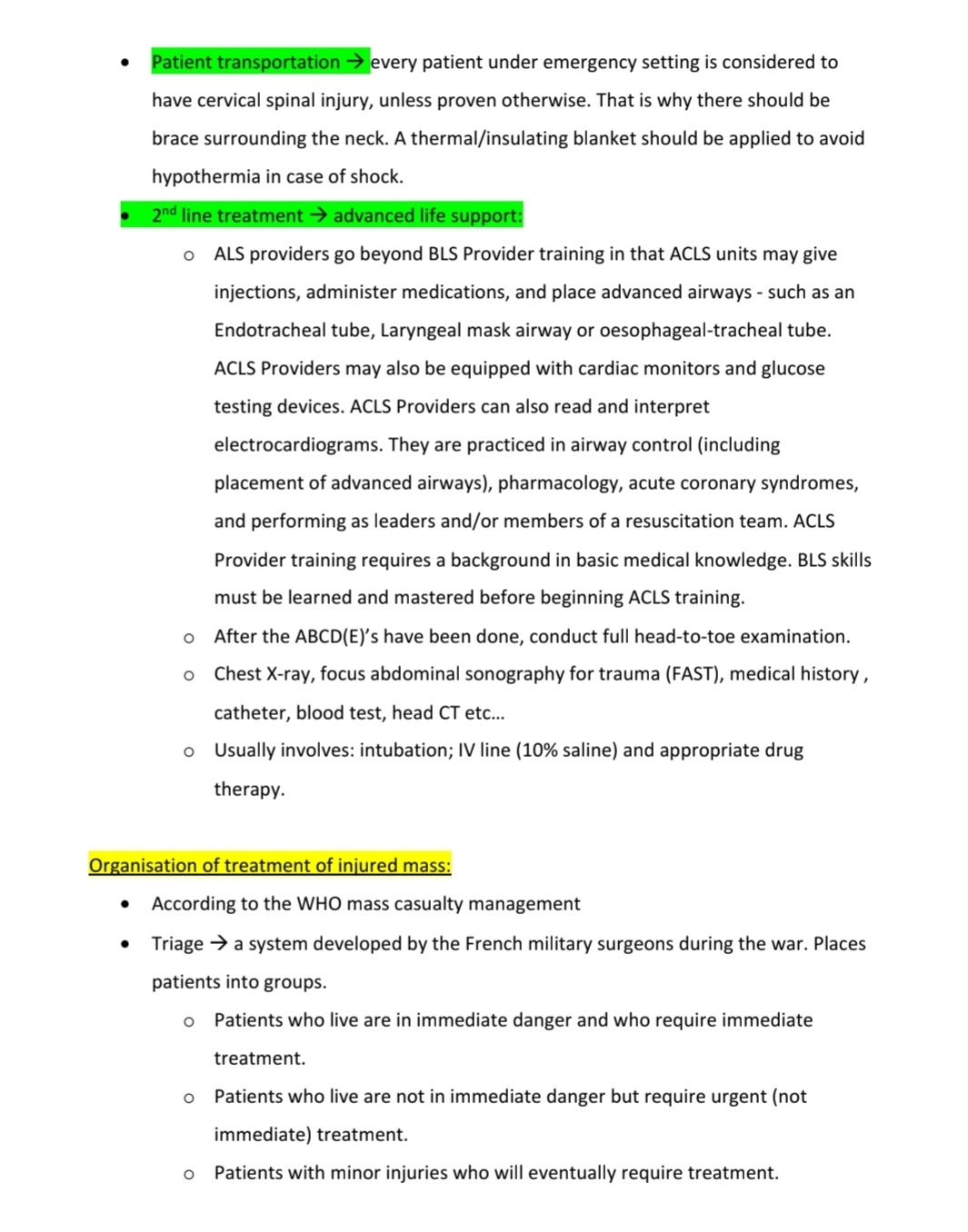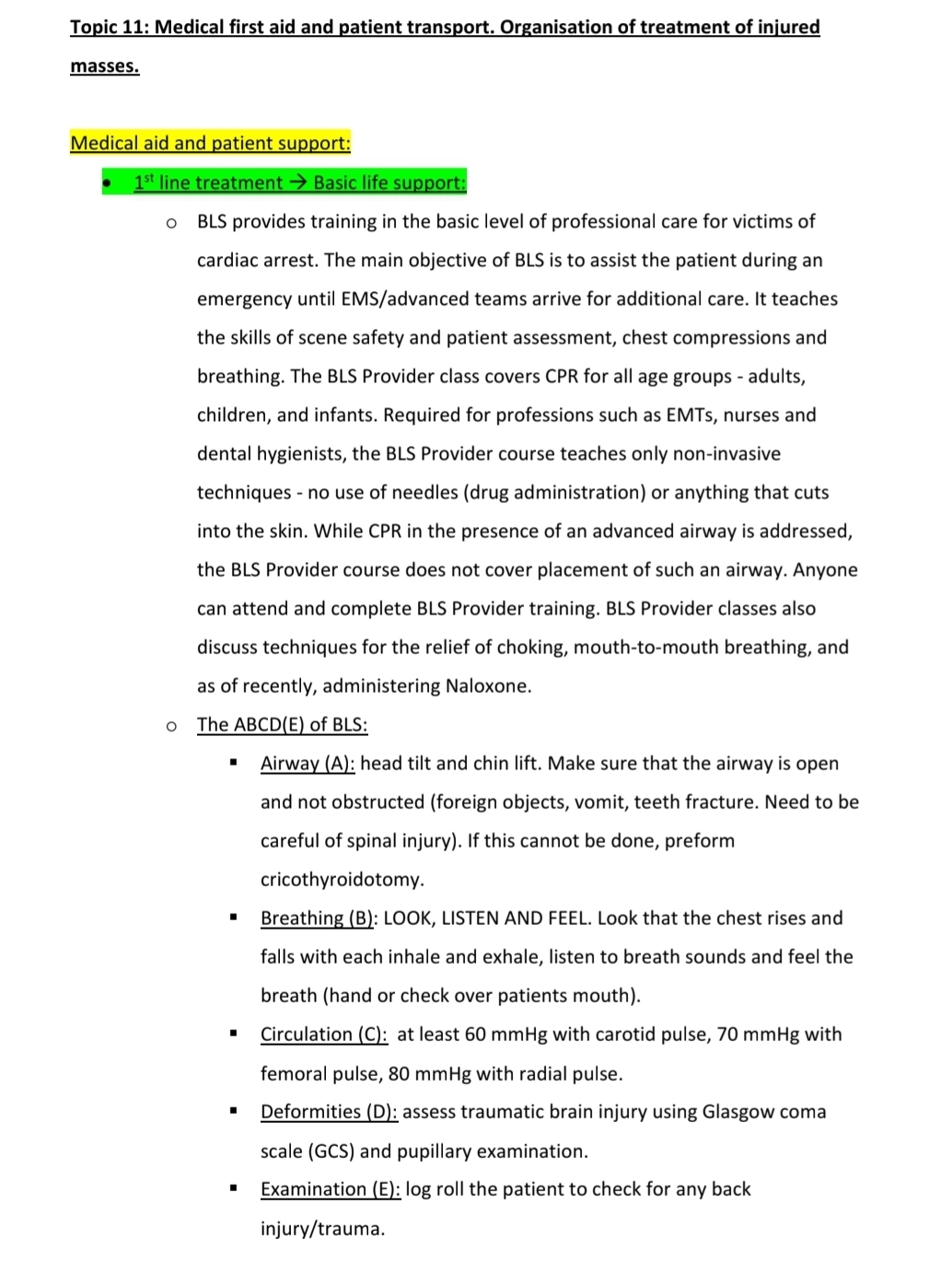 Medical first aid and patient transport. Organization of treatment of injured masses.
