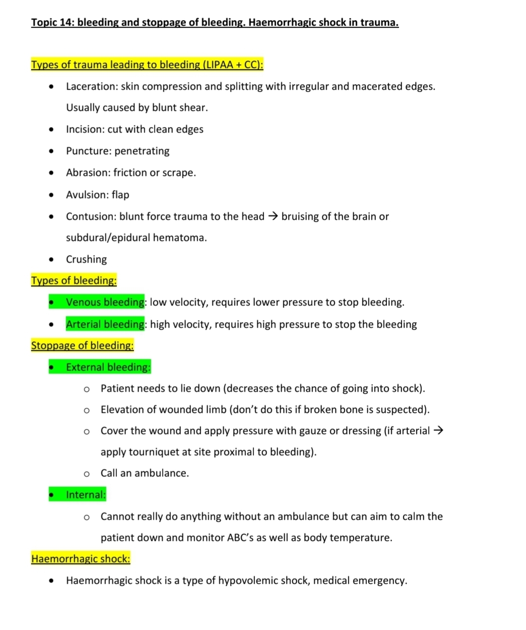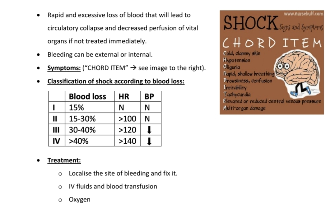 Bleeding and stoppage of bleeding. Hemorrhagic shock in trauma.