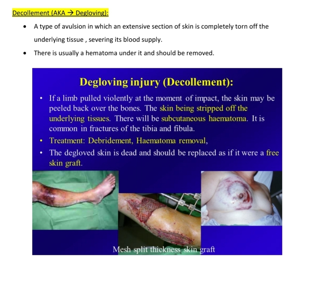 Wounds, type of wounds, rules of wound treatment. Decollement