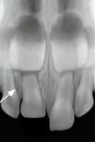 If an x-ray shows that the primary tooth root is shortened, does this mean it is displaced labially away from the permanent follicle, or palatally toward it?