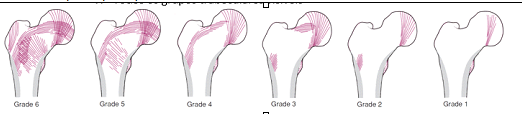 V - Diminuição do trabeculado permanecendo mais as trabeculas principais (tensil e compressiva) à ficam mais visíveis à acentuando o triangulo de Ward
