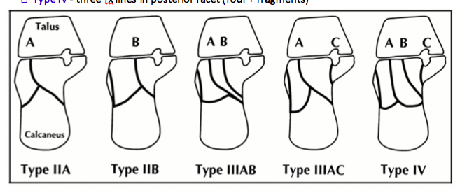 • extra-articular fx with detachment of Achilles tendon and/or > 2mm displacement