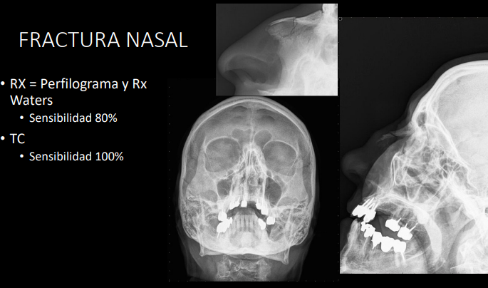 estudio radiologico con sensibilidad de 80% para dx fractura nasal