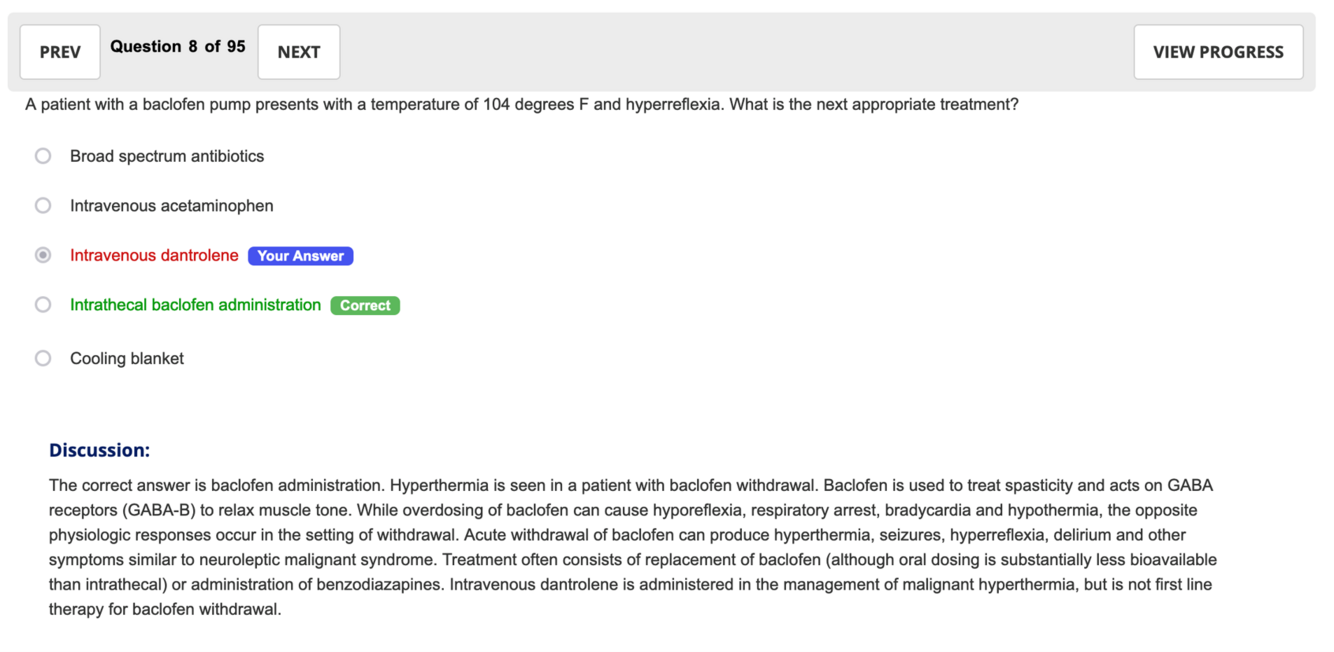 A patient with a baclofen pump presents with a temperature of 104 degrees F and hyperreflexia. What is the next appropriate treatment?