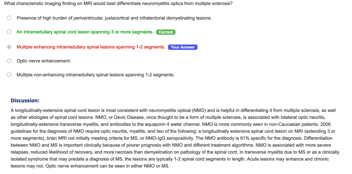 e. Multiple non-enhancing intramedullary spinal lesions spanning 1-2 segments.