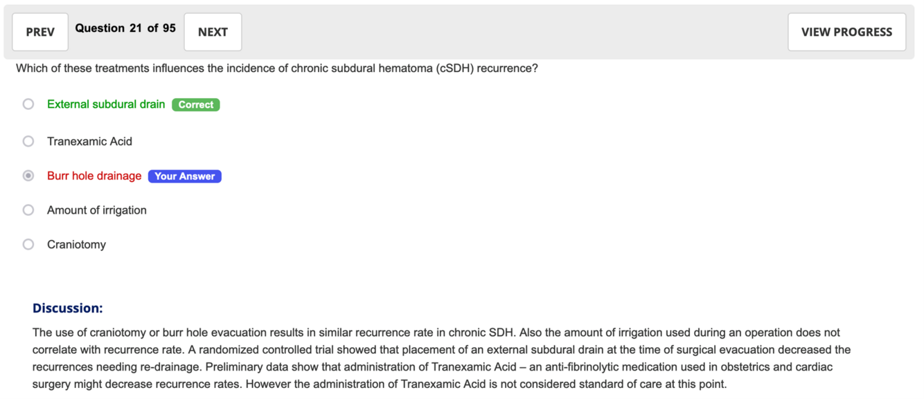Which of these treatments influences the incidence of chronic subdural hematoma (cSDH) recurrence?