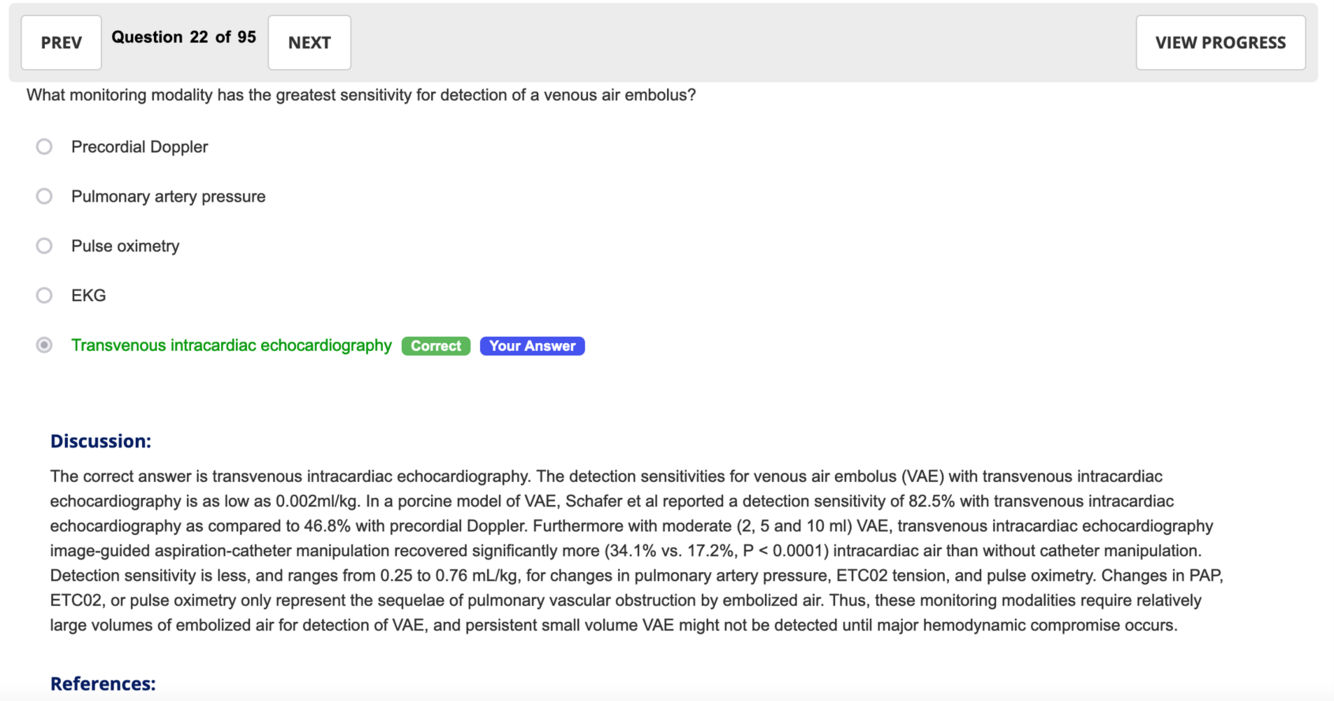 What monitoring modality has the greatest sensitivity for detection of a venous air embolus?
