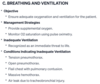 Rationale: Tension pneumothorax is an immediately life-threatening condition in the Breathing category, characterized by air accumulation in the pleural space.