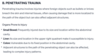 Rationale: Blunt trauma typically involves injuries caused by a forceful impact without penetration, such as injuries sustained in car accidents or falls.