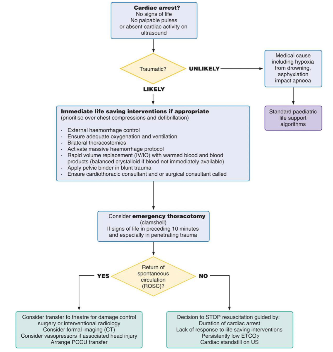 Paediatric traumatic cardiac arrest flow chart? What are the considerations for reversible causes
