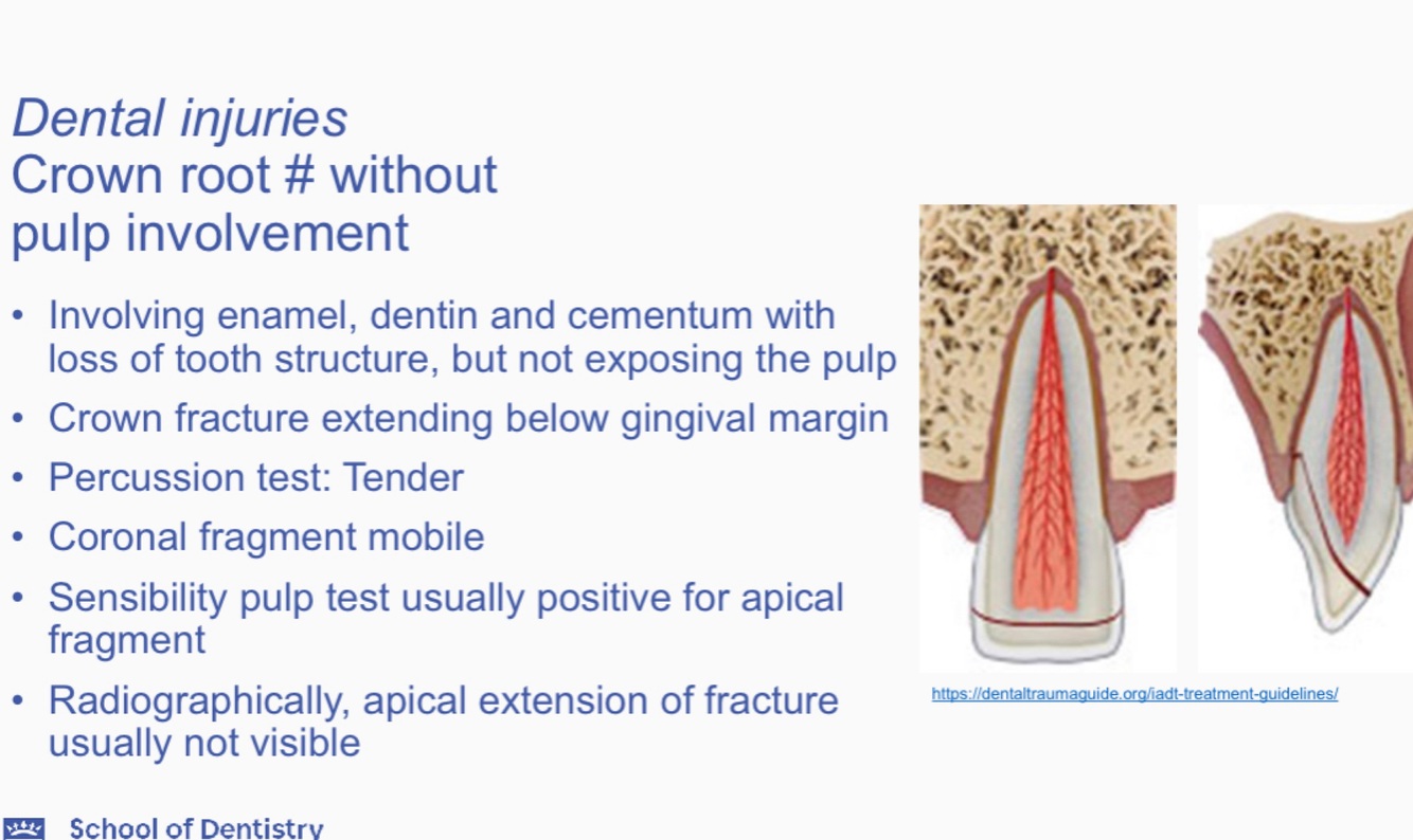 Blood clot attached to gingival crevice (if recent <24 hours)