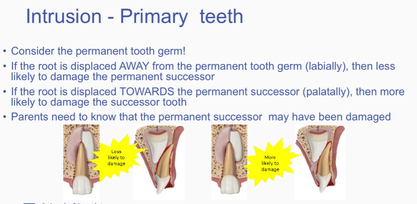 In primary teeth, this tooth may be allowed to reposition itself spontaneously.
