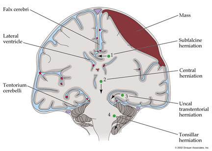 decreased perfusion and/or herniation syndromes